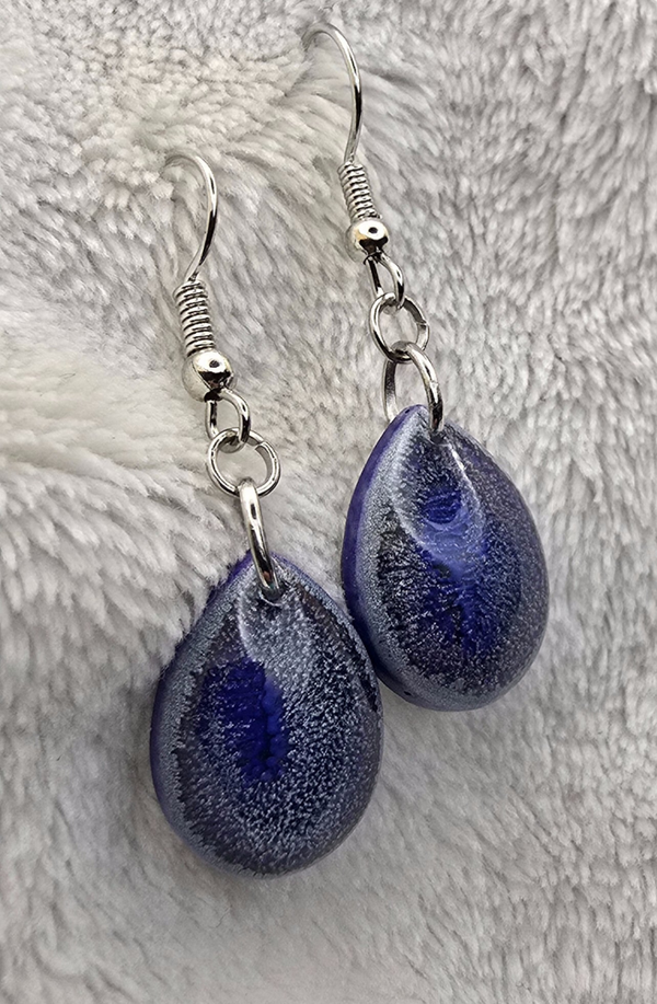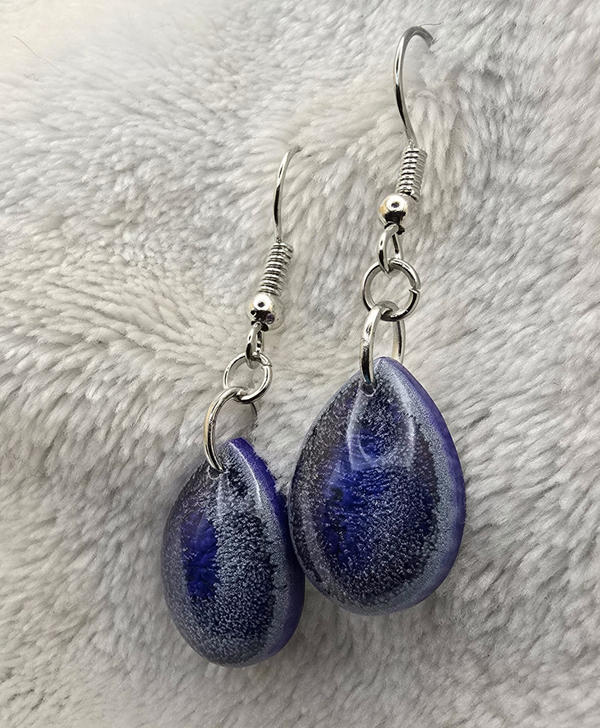 Laissez-vous séduire par ces boucles d’oreilles passionnantes à contempler, où se marient avec harmonie un violet profond et un bleu ciel lumineux. De fines pailletes argentées ajoutent un éclat subtil, captant la lumière à chaque mouvement pour un effet irrésistible.