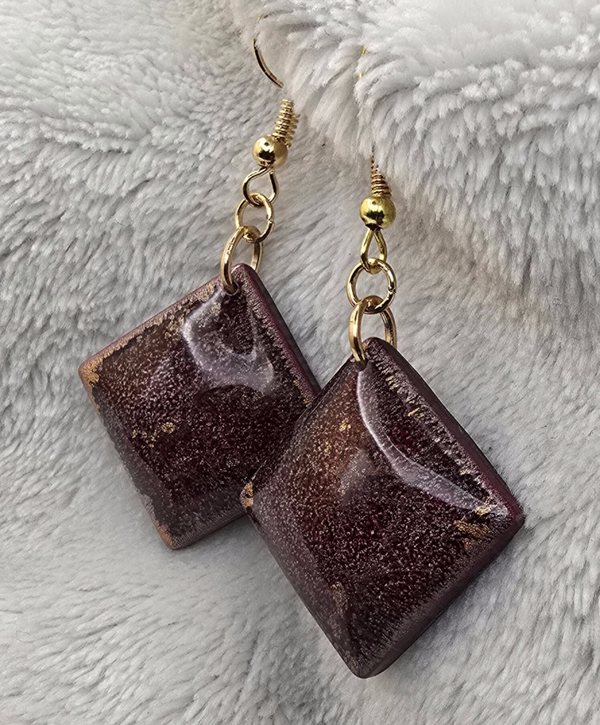 Boucle d'oreille carré bordeaux & cuivre – Attache argentée